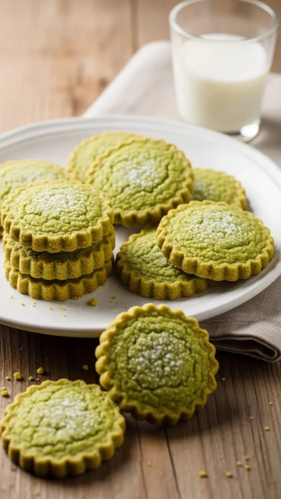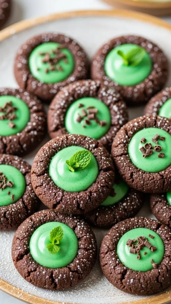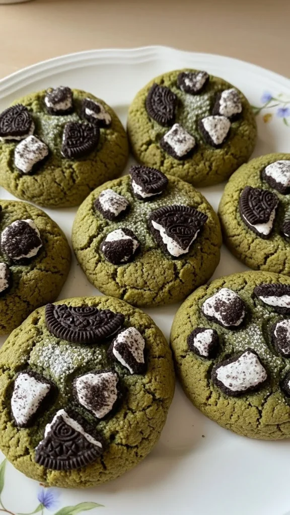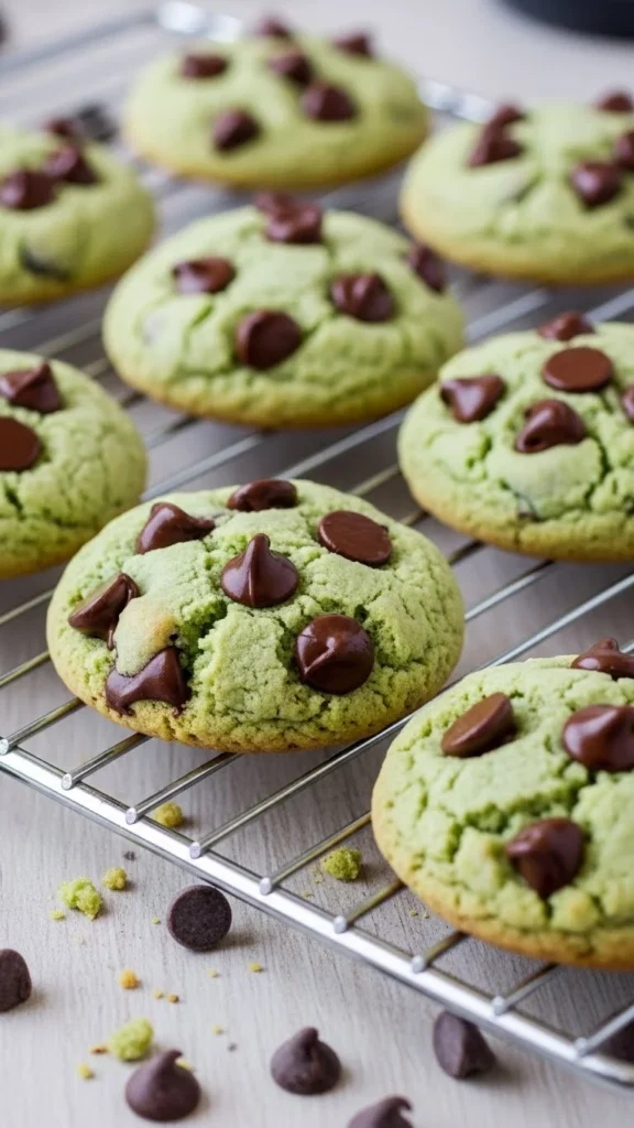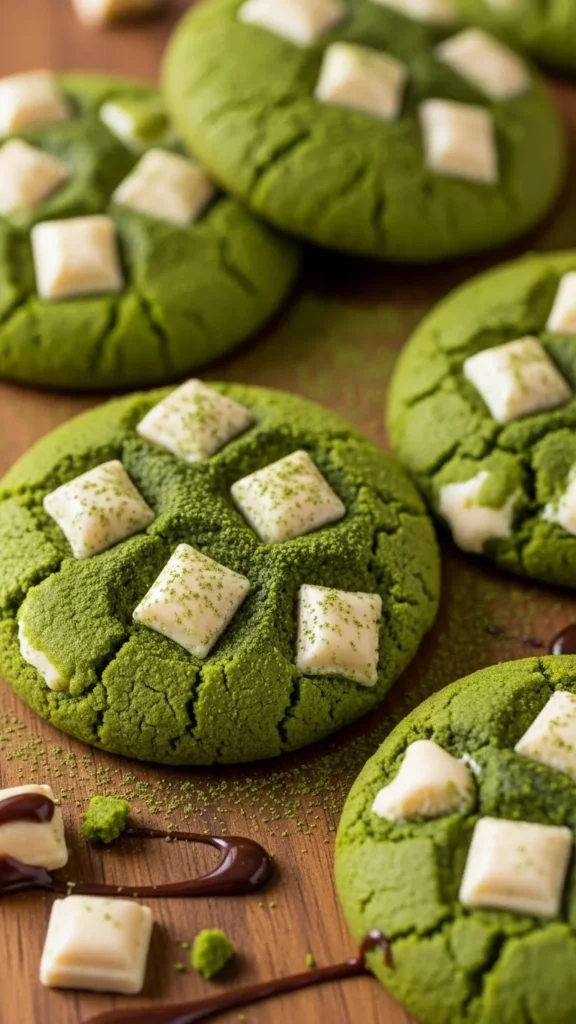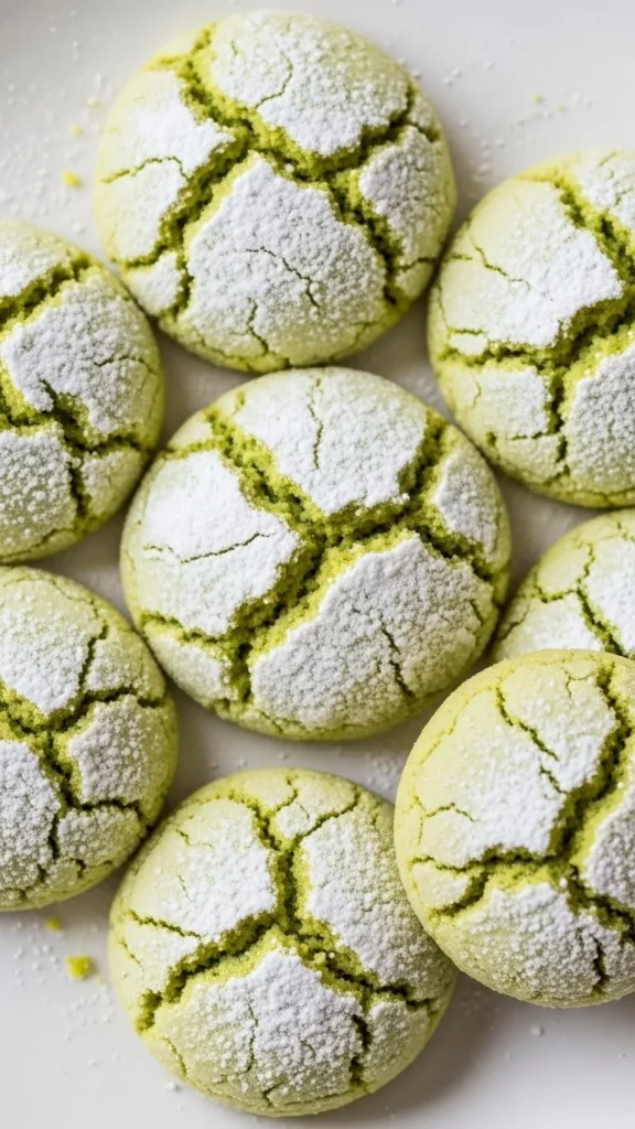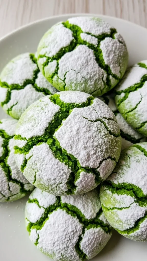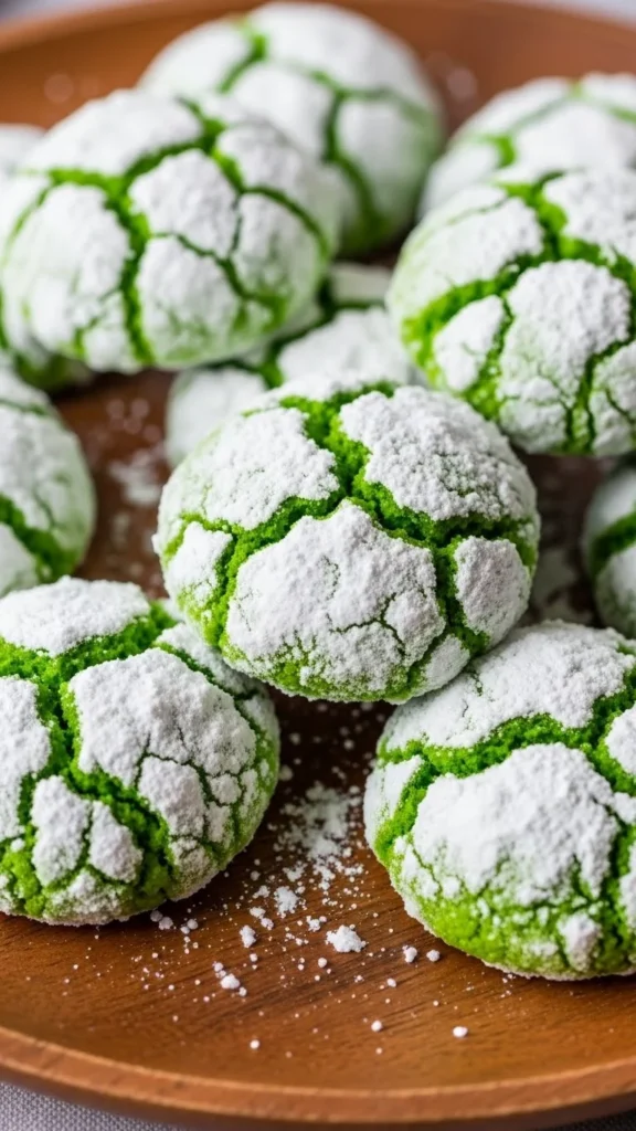 These cookies bake with dramatic cracks and a soft interior. Cocoa adds depth without overpowering. The green color shows through beautifully. They look impressive with little effort. Great for cookie trays.