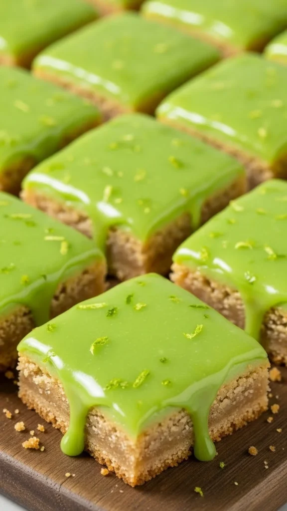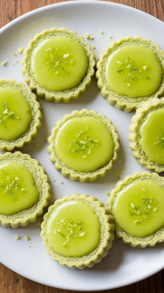 These buttery shortbread cookies crumble gently with each bite. Lime glaze adds brightness. The green tint stays subtle. They look elegant and simple. A great contrast to richer treats.