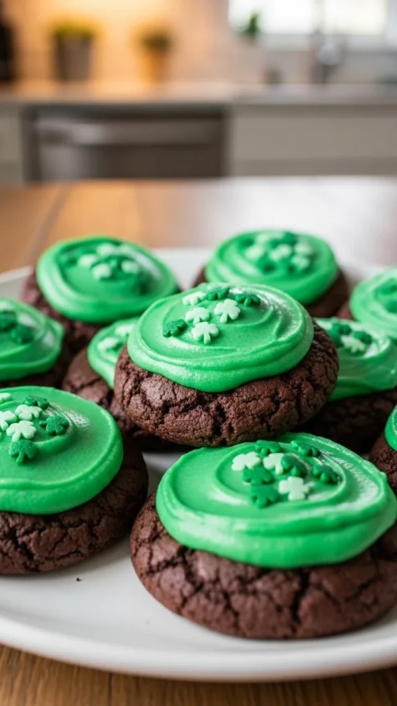 These cookies combine soft vanilla dough with crunchy cereal marshmallows. Each bite has texture contrast. Kids love the colors. They bake quickly and stay soft. A playful St Patrick’s Day option.