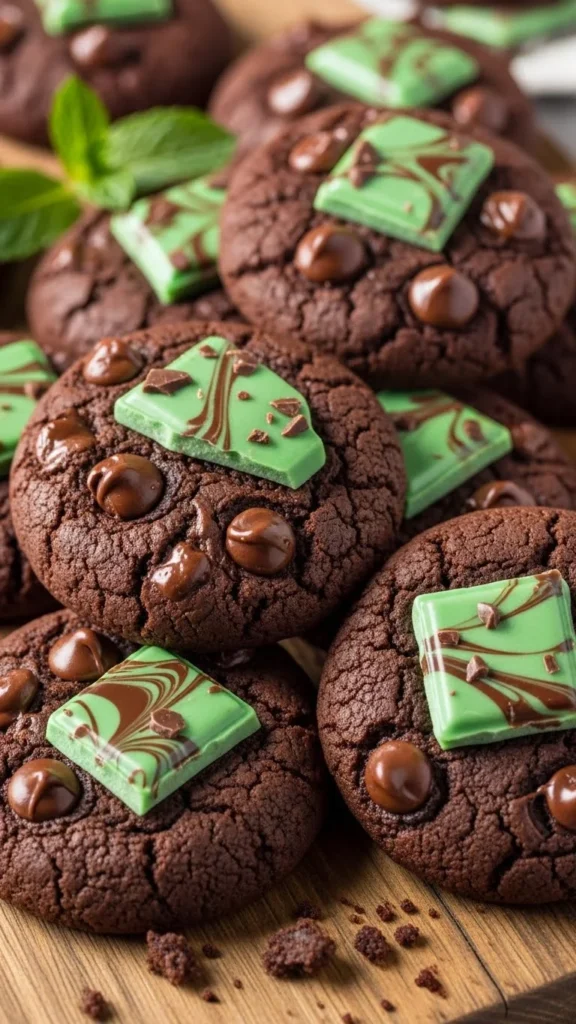 These rich chocolate cookies are finished with mint chocolate on top. The chocolate melts slightly for a smooth finish. The flavor combo feels classic. They cool into bakery-style treats. Perfect after dinner.