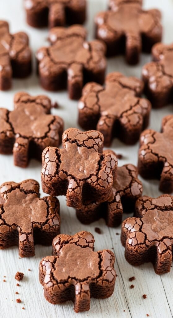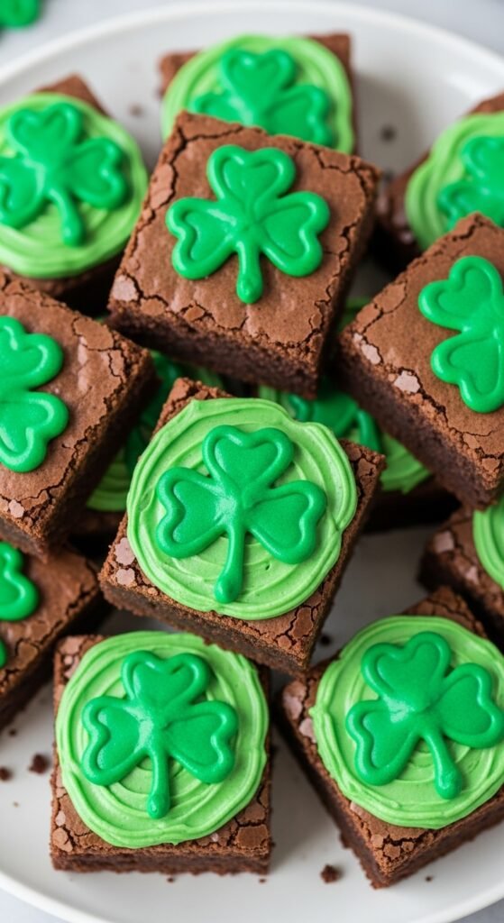 These bite-sized brownies are dense, fudgy, and easy to serve. Cutting them into shamrock shapes adds instant holiday charm. They’re great for grab-and-go party trays. Minimal decorating keeps prep simple.