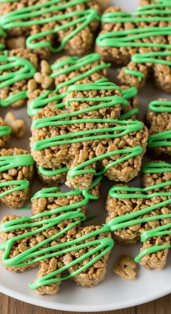 These treats are chewy, sweet, and familiar, making them popular with kids. The shamrock shape turns a classic dessert into a festive party snack. No baking required keeps things quick. Great for last-minute prep.