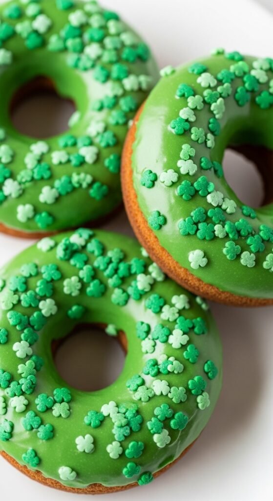 Soft baked donuts topped with green glaze make a fun party option. They’re lighter than fried donuts and easy to decorate. Great for brunch-style gatherings.