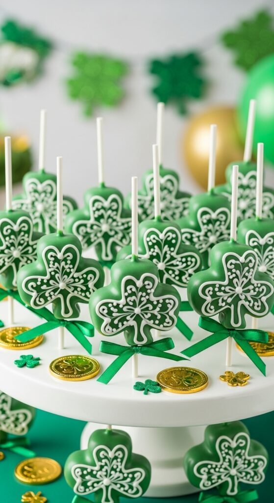 Cake pops are neat, portable, and easy to display. The shamrock shape adds charm without extra mess. Ideal for dessert tables.