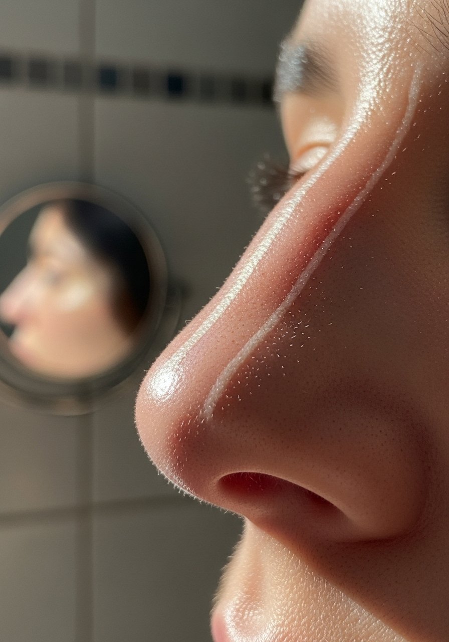 I thin my nose by drawing two fine lines from the inner brow down to the nostril wings, then blend with a small sponge tip. A vertical highlight down the bridge makes the illusion work. For me, a matte cream stick works better than powder for precision. Then I press a tiny bit of finishing-powder to set, otherwise the highlight slips by midday.
