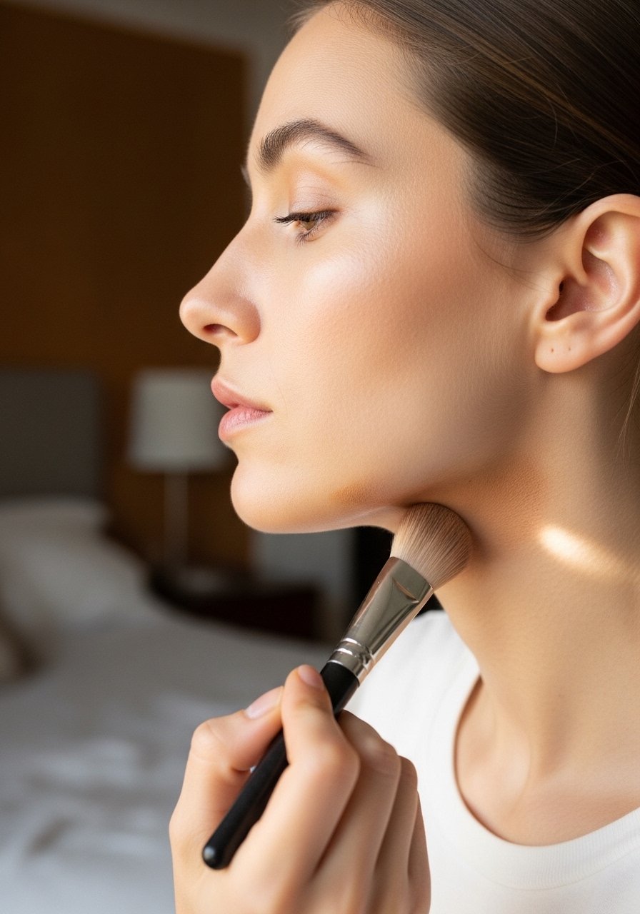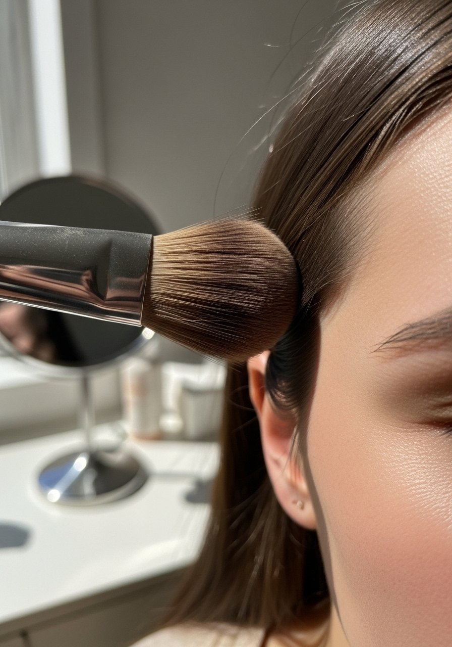 This is a newer trick I started using: extend a soft contour into the hairline to frame the face and tighten the silhouette. It reads very natural if you use a small amount and blend with a brush. On days my hair is pulled back this adds instant polish. I first tried it when I forgot a hat and needed a quick frame. A small contour-brush-set brush is essential.