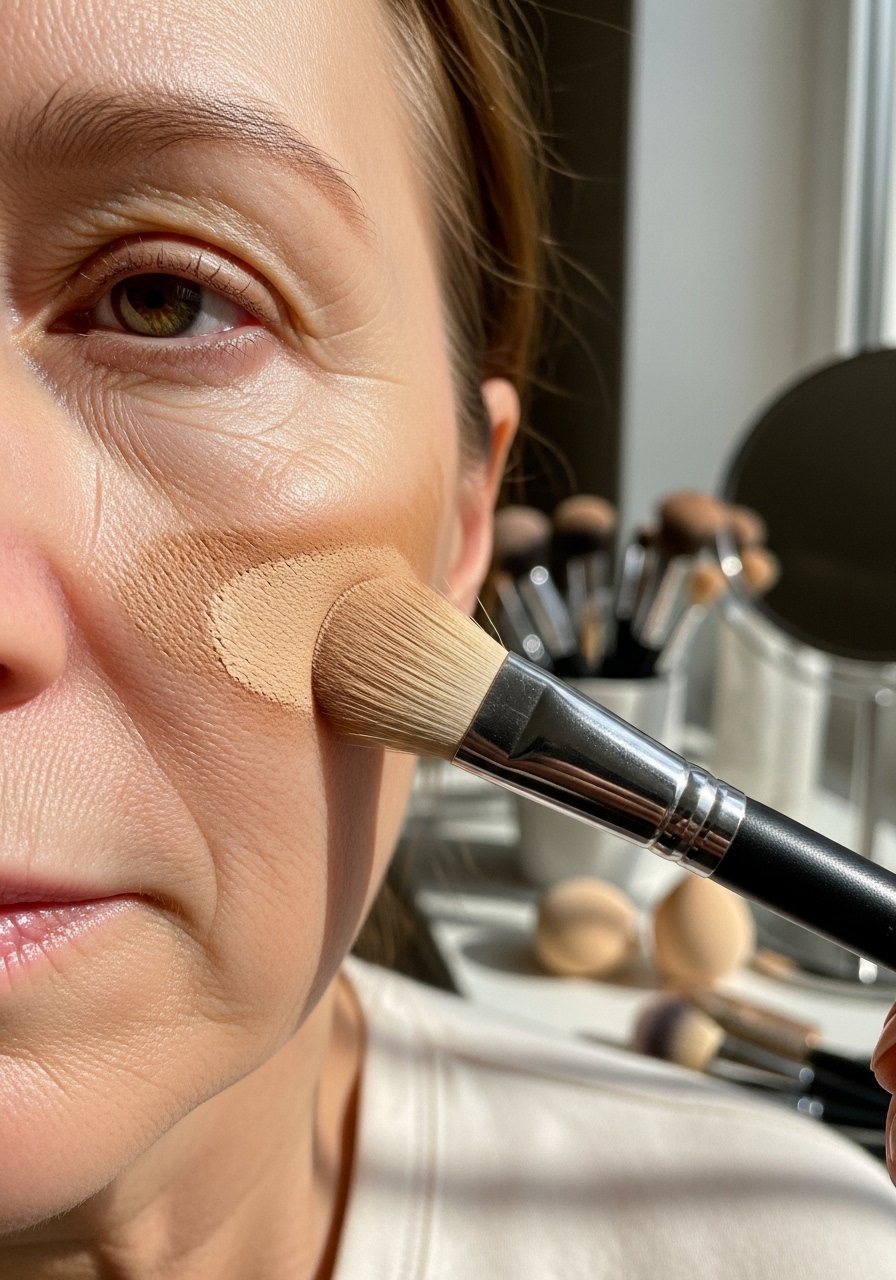 On mature skin I avoid heavy powders in fine lines, so I reverse contour by highlighting the high points rather than aggressively darkening hollows. A light-reflecting cream in the high cheek and a soft shadow beneath creates lift without texture. I swapped to a lightweight liquid-foundation for this method and it reads fresher in photos.