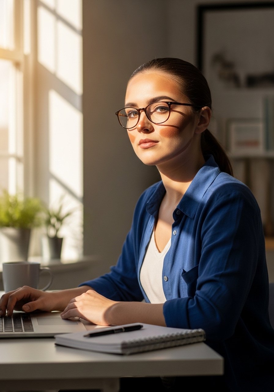 Glasses change where shadows sit, so I contour slightly lower on the cheek and avoid heavy nose contour where frames sit. The goal is to keep definition visible beyond the frame. I tested this over months and most days a lighter hand works best. A finishing-powder helps reduce glare on lenses.