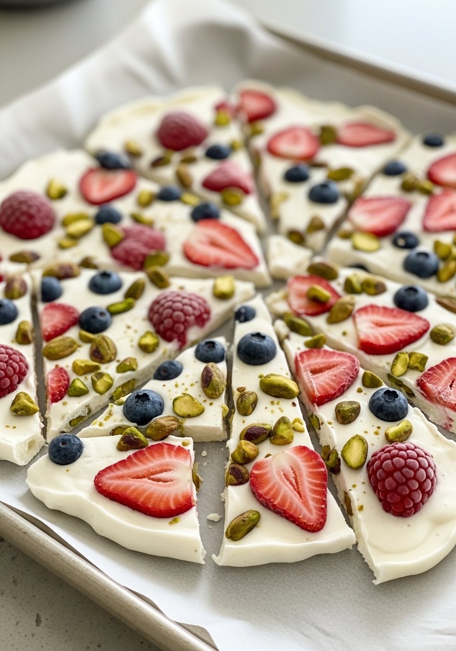 This is my go-to for a fast, freezer-friendly treat that kids love. Spread thick Greek yogurt on a parchment-lined tray, swirl in honey, scatter berries and chopped pistachios, freeze until firm, then break into pieces. It took me a few tries to get thickness right, but now I aim for about three quarters inch so it’s sturdy. Store in a freezer container for quick snacks, and it serves well at casual spring picnics.