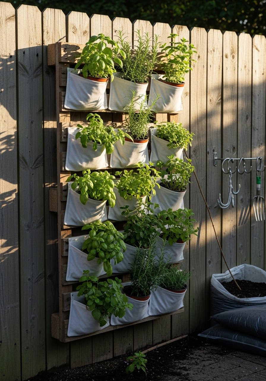 I screwed a pallet to my fence and added coco coir liners to create pockets for herbs. Basil, parsley, and chives fit perfectly and I was shocked how much I harvested: I noticed about 60% more usable herbs than my old countertop jars. Use self-watering-planter inserts for less fuss. It saved floor space and gave me a living spice wall that I actually use when I cook.