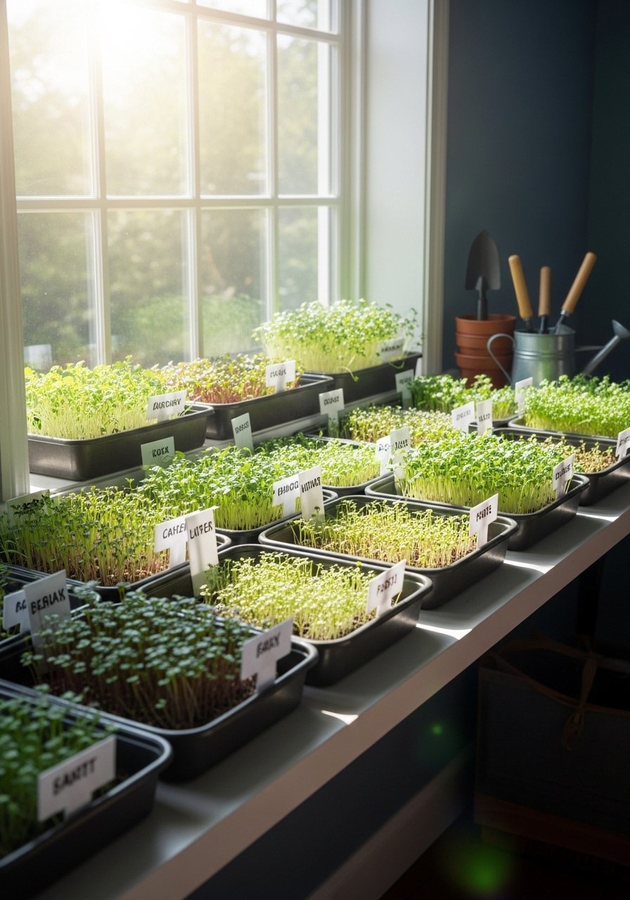 I turned my kitchen window into a micro-greens station using shallow trays. Two trays fit side by side and I harvested salad greens weekly. I noticed about four harvests per tray over a month, so it pays off quick. Use a herb-seed-kit for easy seeds.