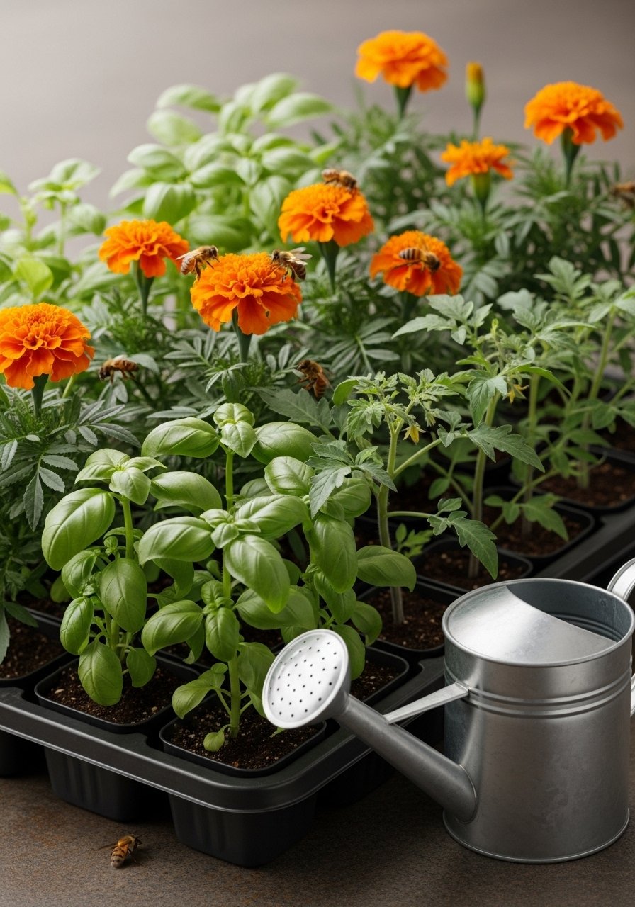 For a tiny terrace I grouped tomato, basil, and marigolds in one big tray. Pests were lower and flowers drew pollinators. I noticed about 20% better fruit set compared to tomatoes alone. This is great when you want color and yield from a single footprint. Try companion combinations from a herb-seed-kit.