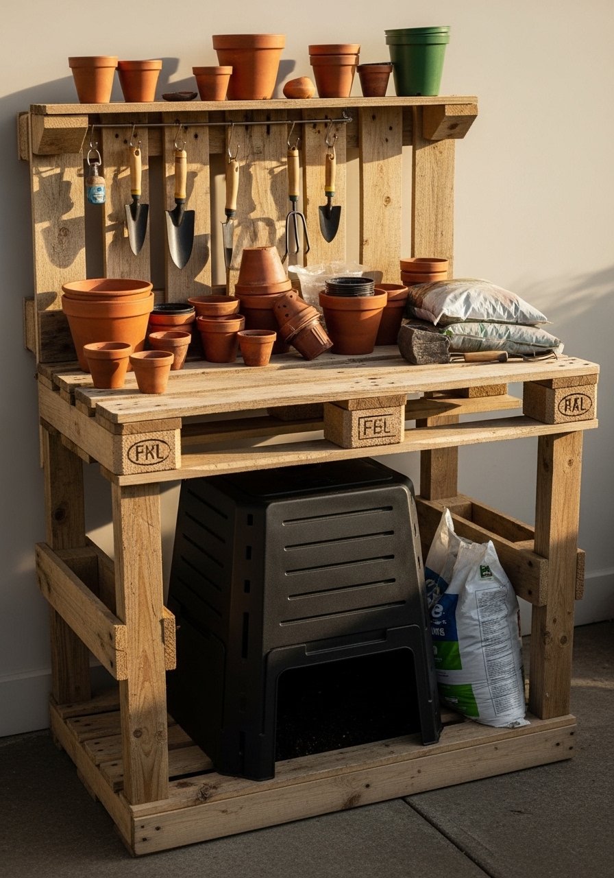 I built a potting bench from an old pallet and tucked a small compost bin underneath. It saved me trips to the garage and I recycled kitchen scraps into potting boost. Composting cut my soil purchases by about 30% over a season. A compact hand-trowel and compost starter made it easy.