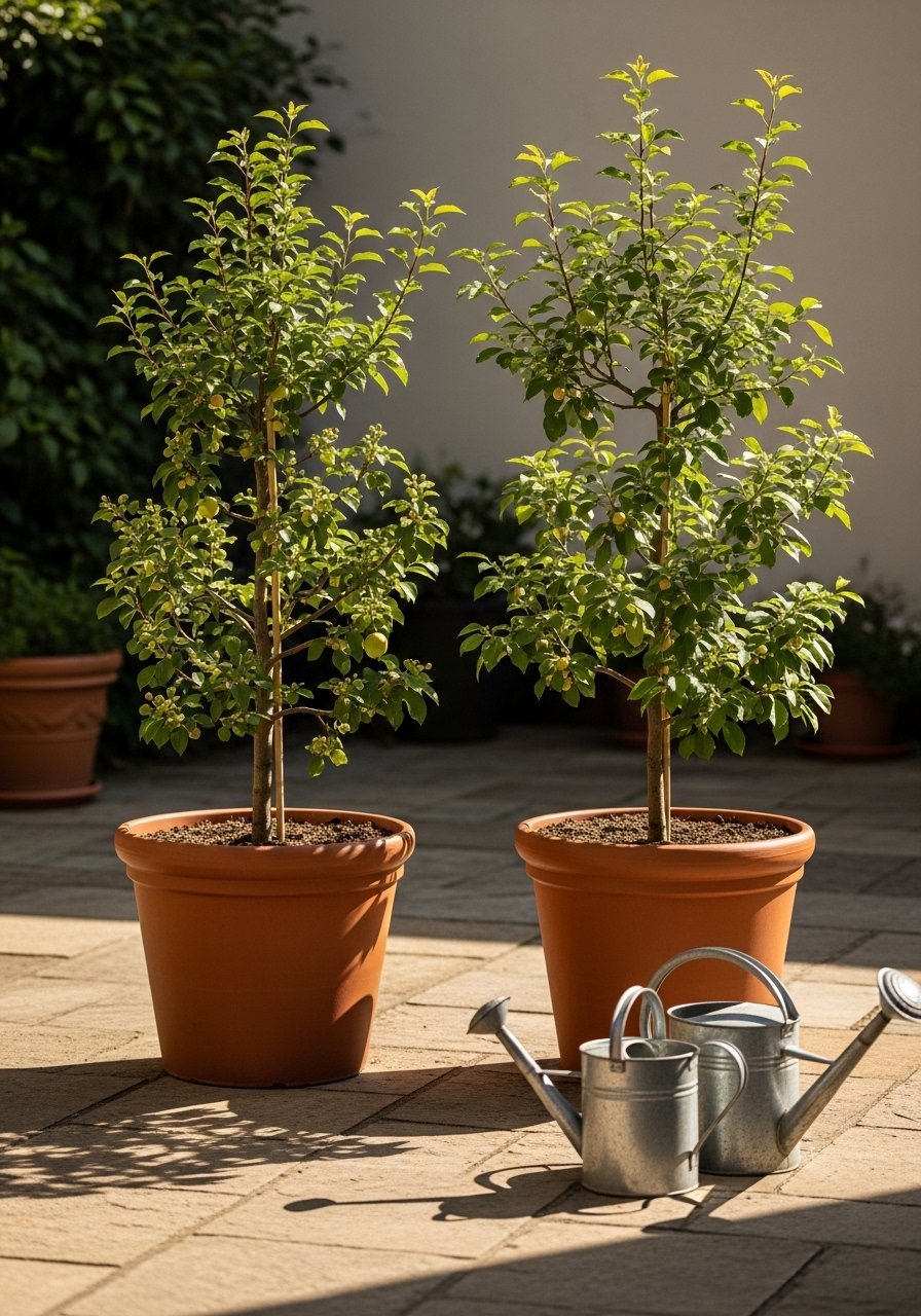 I planted dwarf apple and fig trees in big containers and trained them to stay compact. They blossom and give a few fruits, enough for a treat. I was surprised how quickly a container tree adds structure to a small space. Feed regularly and winter-over indoors if your zone demands. Use a large self-watering-planter for stability.
