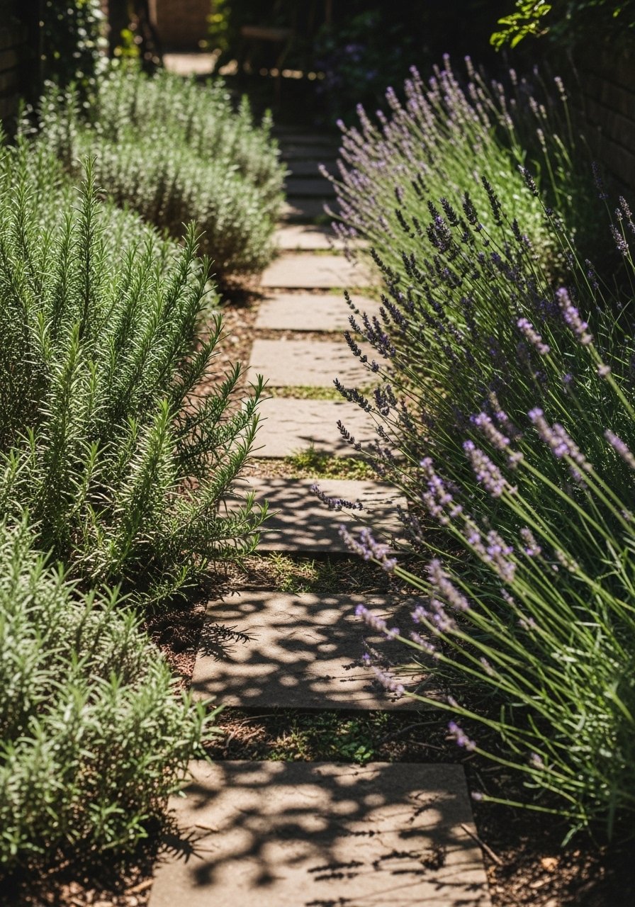I edged a narrow walkway with rosemary and dwarf lavender. The scent is constant when you brush past and it uses very little width. I harvest sprigs through the season. These tough plants tolerate neglect and make a small space feel curated. Plant in a gritty potting-mix for best drainage.
