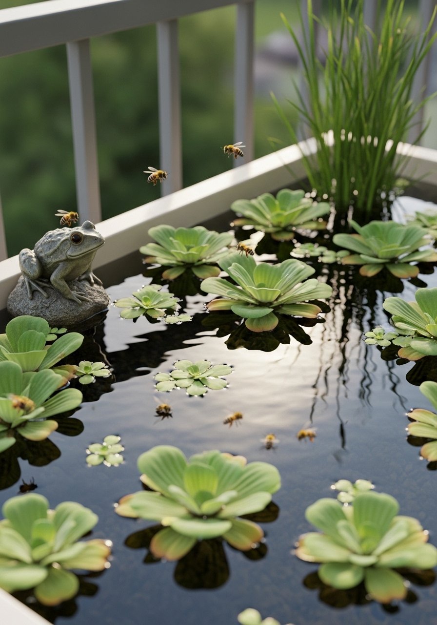 I added a tiny shallow pond and saw more pollinators and beneficial insects visit. It also provided a humid pocket for moisture-loving containers. Keep it shallow, change water occasionally, and add floating plants to prevent algae. Use a wide shallow tray rather than deep tubs for safety.