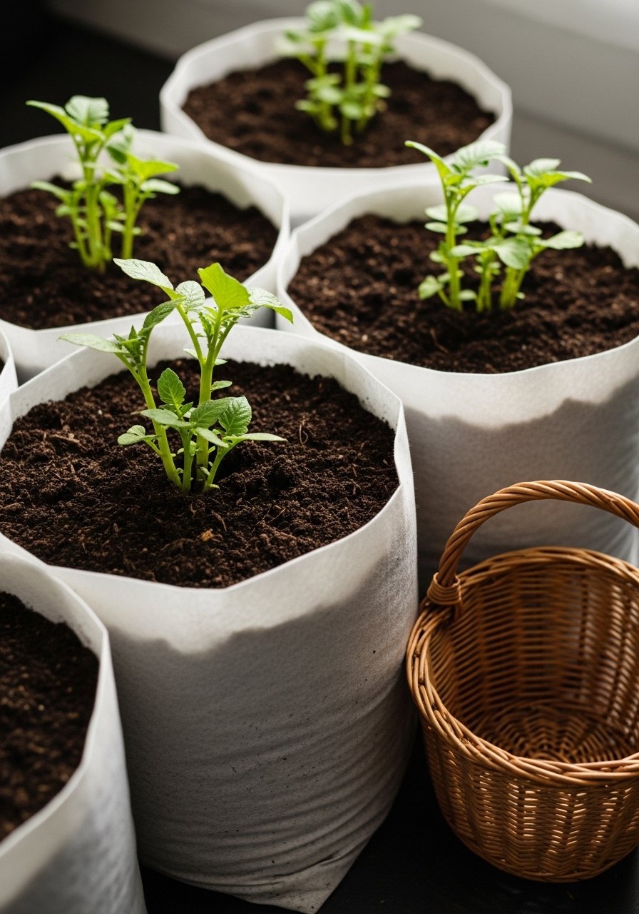 I planted potatoes in fabric grow bags and harvested in stages by pulling aside soil. It was mess-free and surprisingly productive for a porch. The bags are light to store and give good aeration. A potting-mix blended with compost did the trick.