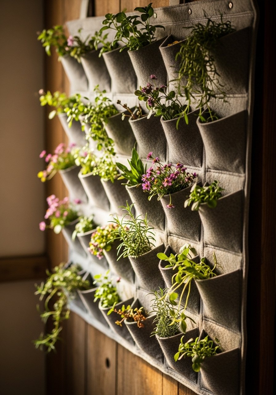 I hung felt pocket planters on my apartment wall and filled them with small herbs and strawberries. They stay light and breathe, though I hand-water them weekly. I noticed greener leaves with less rot than plastic pockets. Buy sturdy felt and use quality soil.