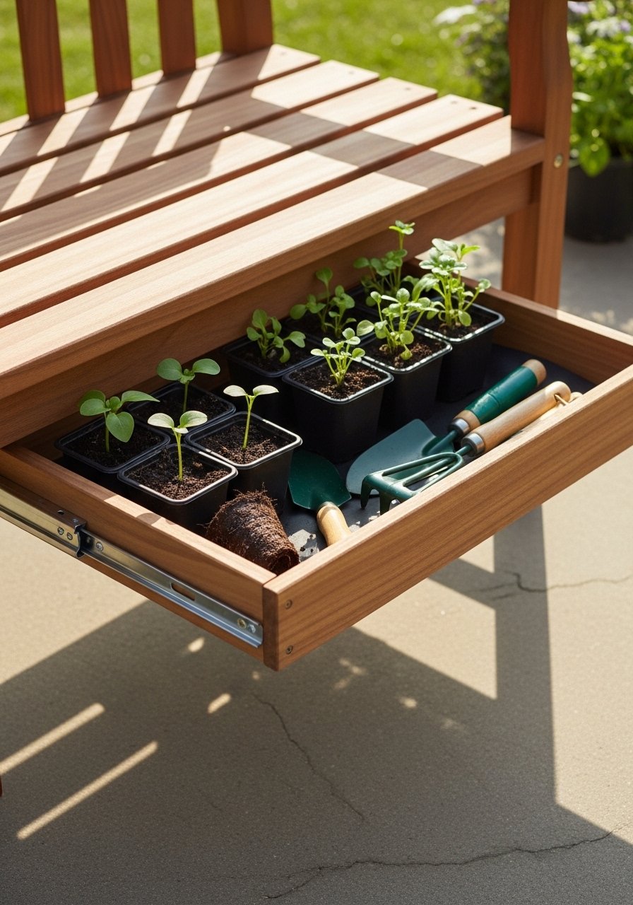 I installed a sliding tray under a garden bench and used it to store seed trays and small pots. It freed up tabletop space and made it simple to tuck away seedlings. This is especially useful when you need to protect starts from chill overnight.