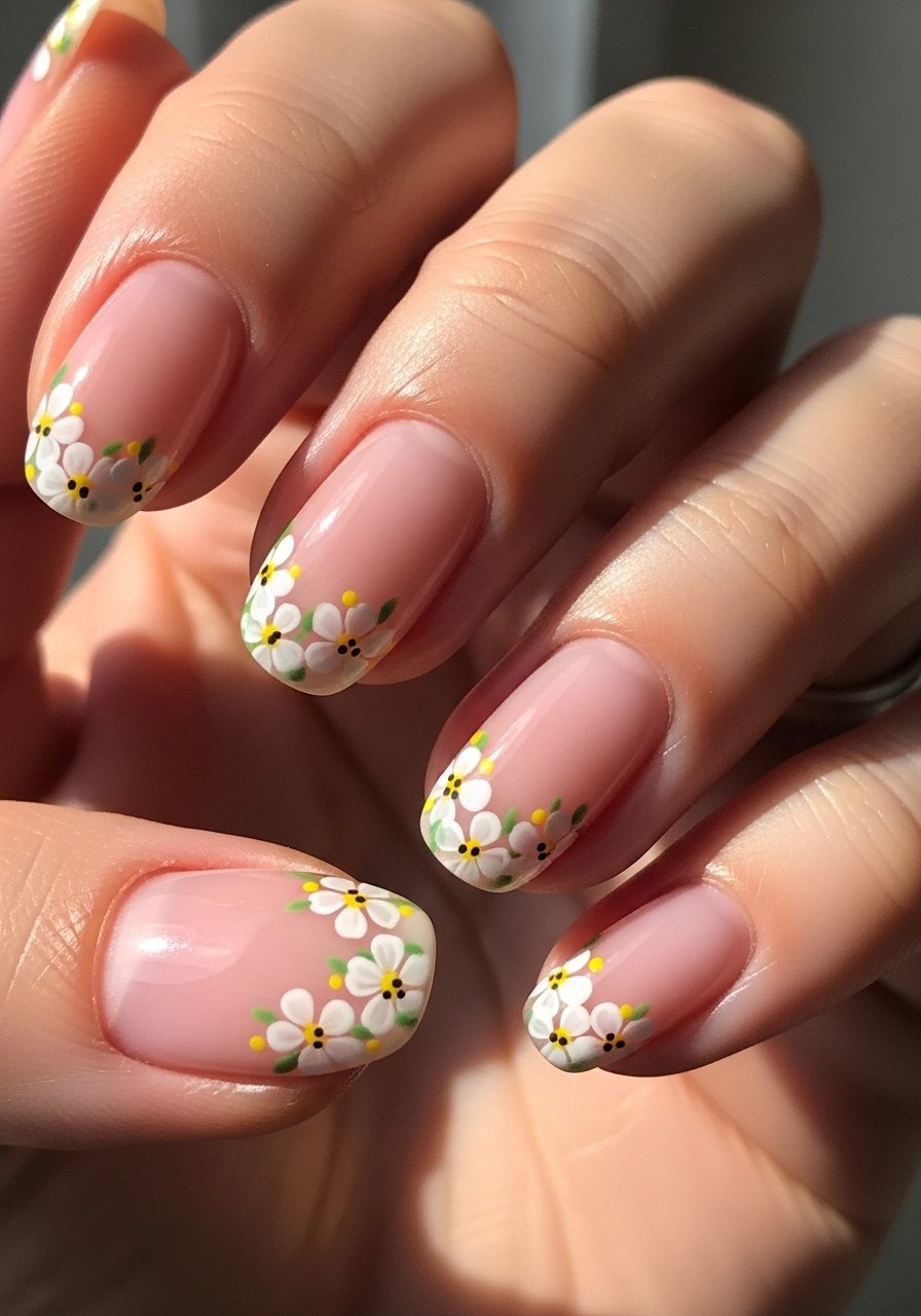 I lean on tiny florals for spring because they read feminine without being fussy. I use a sheer milky base, a fine liner brush, and a soft dotting tool to place petals—Nail-art-brush-set helps keep petals uniform. I’ve noticed small details last better when sealed with a high-quality gel top coat. This look wears well for two weeks with regular cuticle oil.