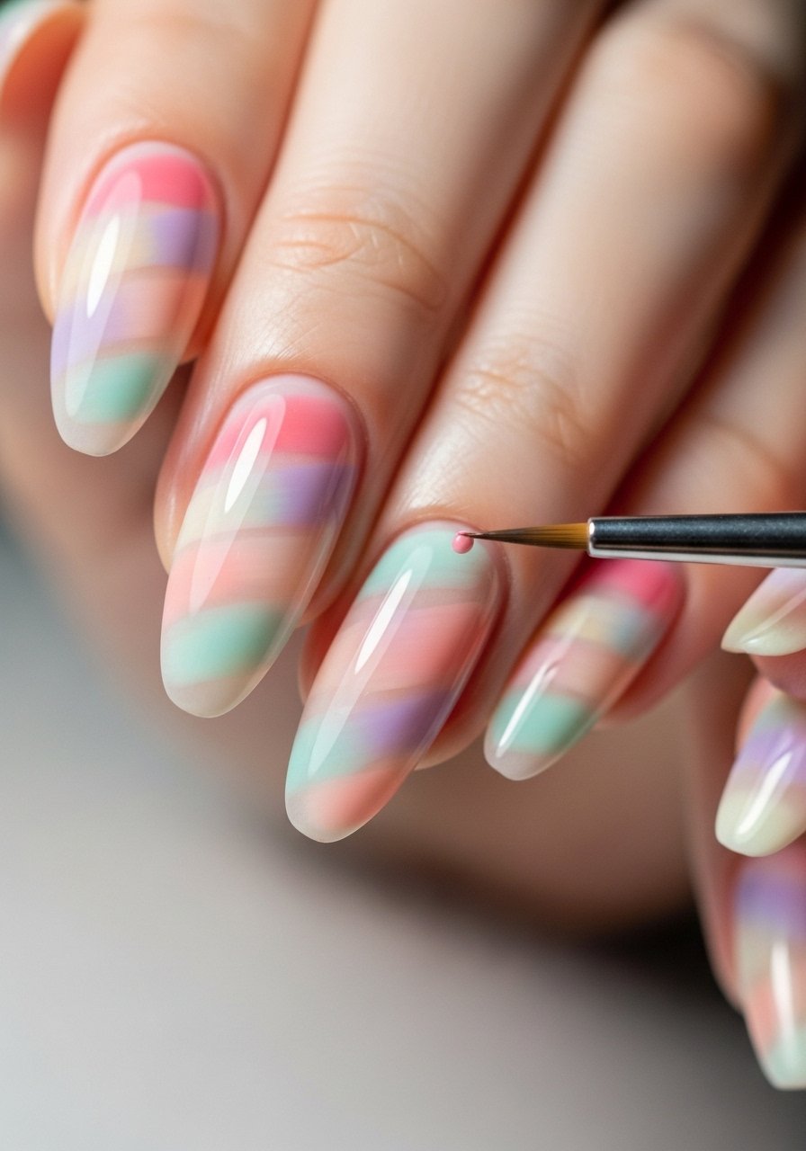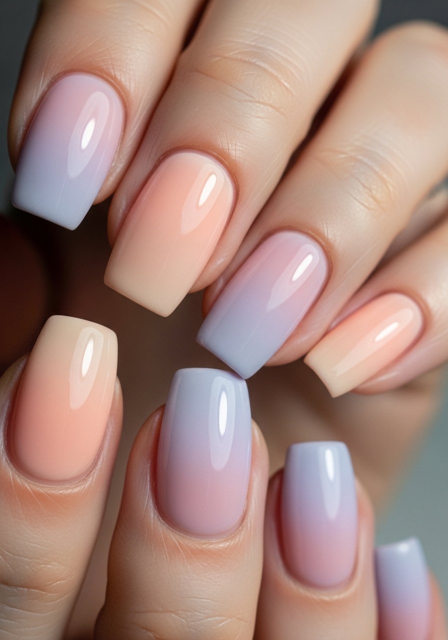 A two-tone sponge and thin layers of gel polish create a blended sunset that still looks intentional on short nails. I alternate sponge dabbing and curing in 20-30 second bursts, finishing with Gel-top-coat-high-shine for mirror finish. I’ve found about 40% of people prefer ombrés because chips are less noticeable where colors merge.