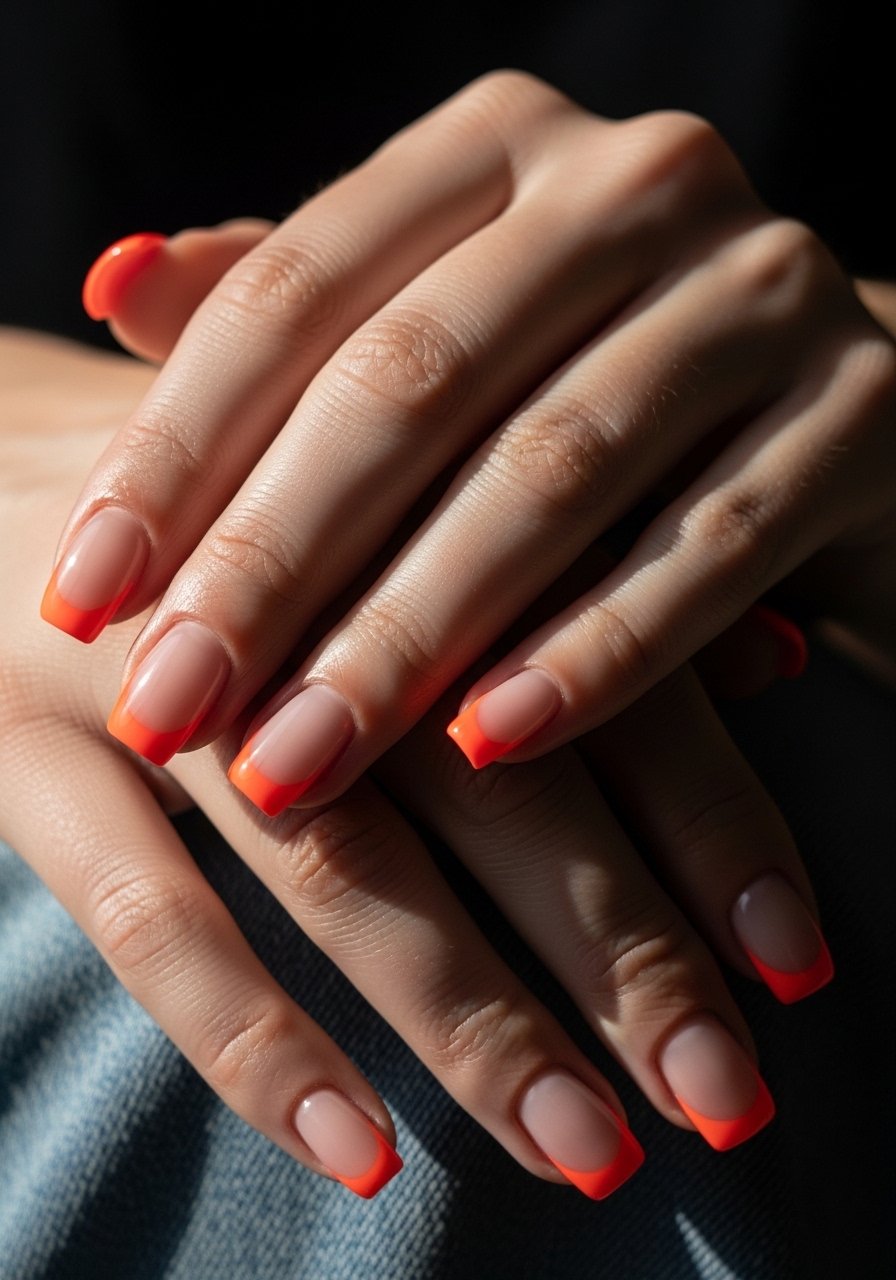 A neon twist on the French is surprisingly versatile—bright tips on a sheer or nude base. I use striping tape or a steady brush and cure each color separately to avoid bleeding; Neon-gel-polish-set gives punchy payoff. I’ve observed neon tips tend to feel fresher when limited to the edge rather than full coverage.