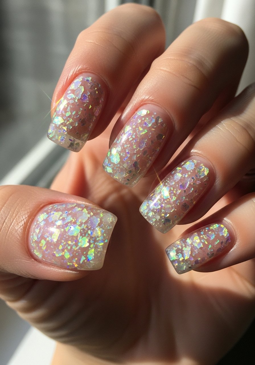 I encapsulate iridescent flakes in builder gel for depth. Small flakes layered and cured produce a sea-glass shimmer that holds up better than loose topcoat glitters—Nail-glitter-flakes is my go-to. I’ve noticed glitter wearers report fewer visible chips because flaws hide well in the texture.