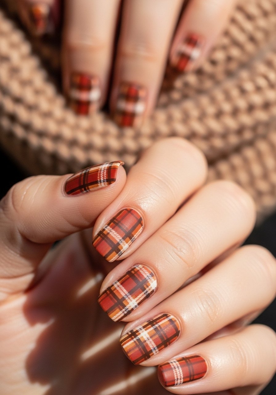 Plaid uses thin striping lines over a matte base for a tactile, cozy feeling. Work with a steady hand and thin brush—Nail-art-brush-set makes the difference. I layer colors and cure in between to avoid smudging and keep lines crisp; this method means the pattern lasts without extra topcoat stress.