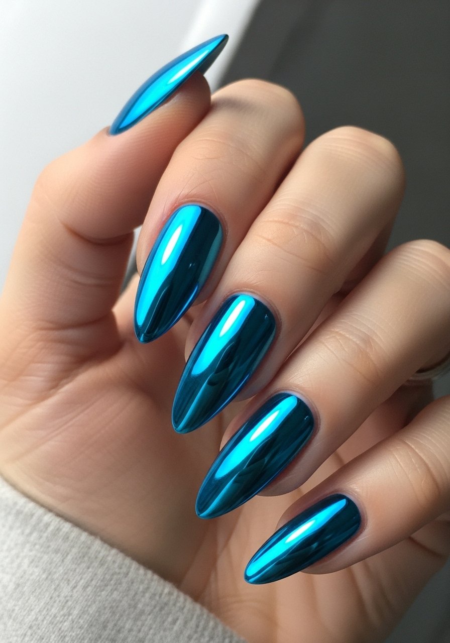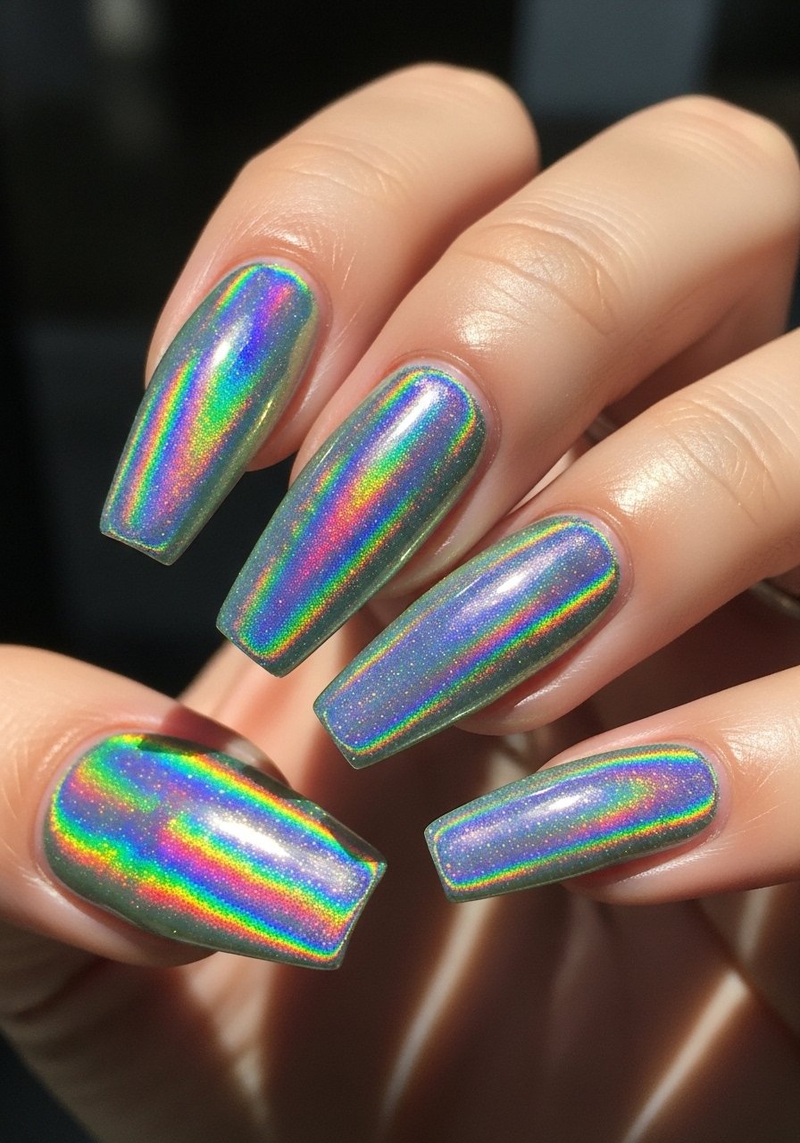 Holographic powders on a smooth base create a rainbow shift that’s attention-grabbing but surprisingly durable when sealed. I apply powder with a soft sponge and lock it with Gel-top-coat-high-shine. I’ve noticed holographic finishes hide small scratches because the light play distracts from imperfections.