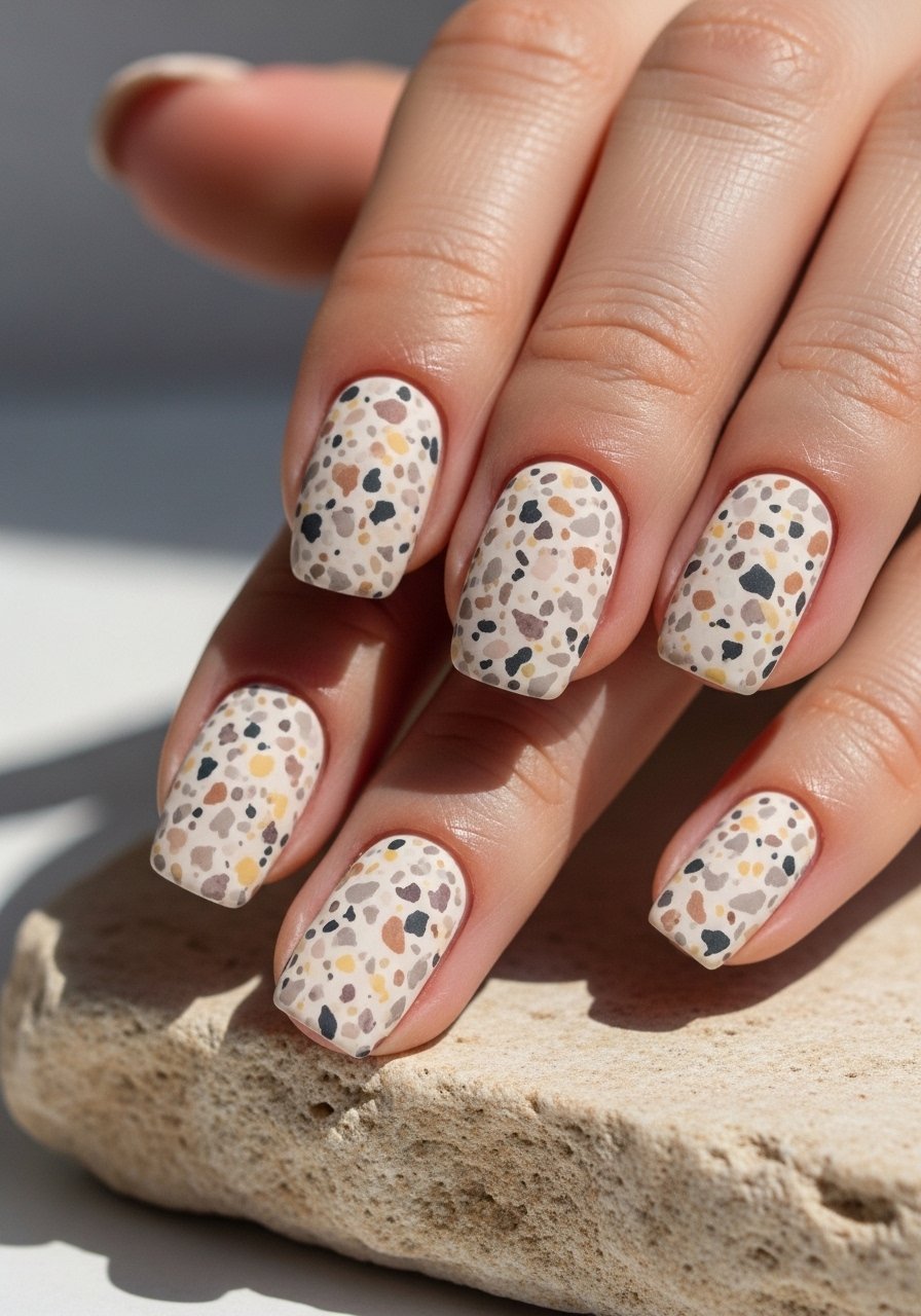 I simulate stone by dabbing tiny speckles in contrasting tones, then sealing with matte or gloss depending on the vibe. Speckled finishes hide chips and read organic—Nail-art-brush-set helps place dots strategically. I’ve observed clients appreciate how forgiving this finish is between salon visits.