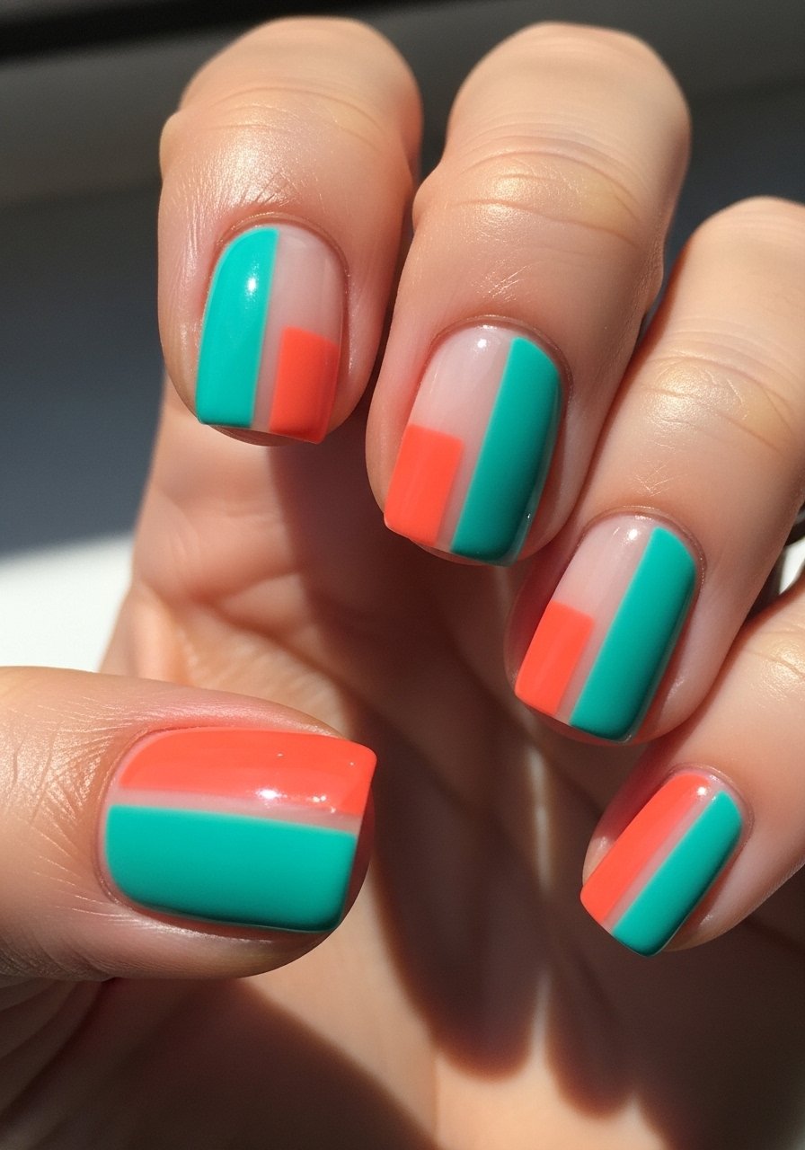 Color blocking with two complementary shades creates punch without fuss. Cure each block separately to avoid bleeding and use striping tape for sharp edges. A reliable Gel-base-coat anchors the layers. I’ve found bold blocks feel modern and survive daily wear well because edges are defined.