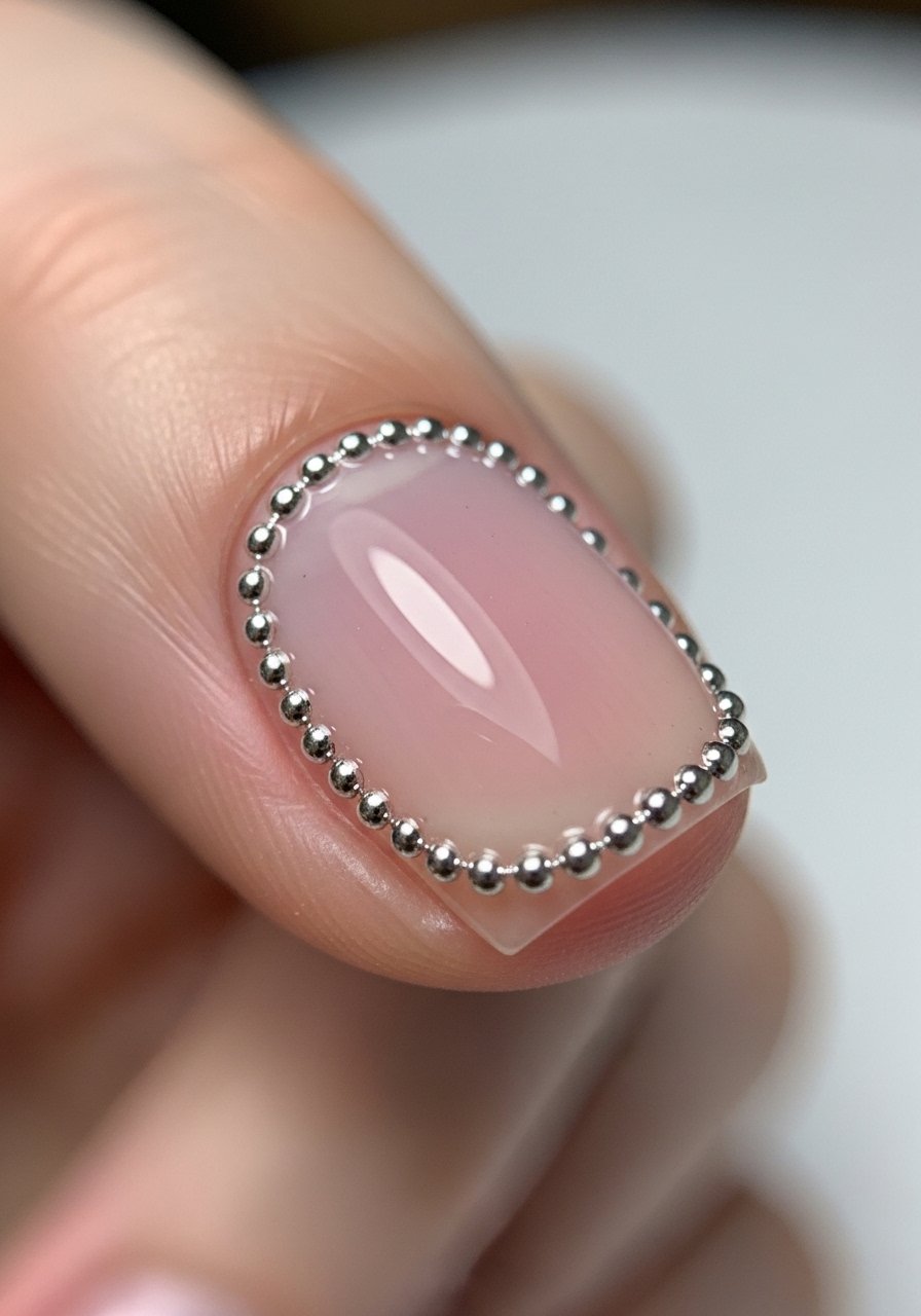 Microbead lines give a tactile edge that reads jewelry-like. Use a thin bead adhesive or builder gel to place beads and seal well—Builder-gel-clear secures them. I’ve observed that microbeads can last when placed flush and fully encapsulated.
