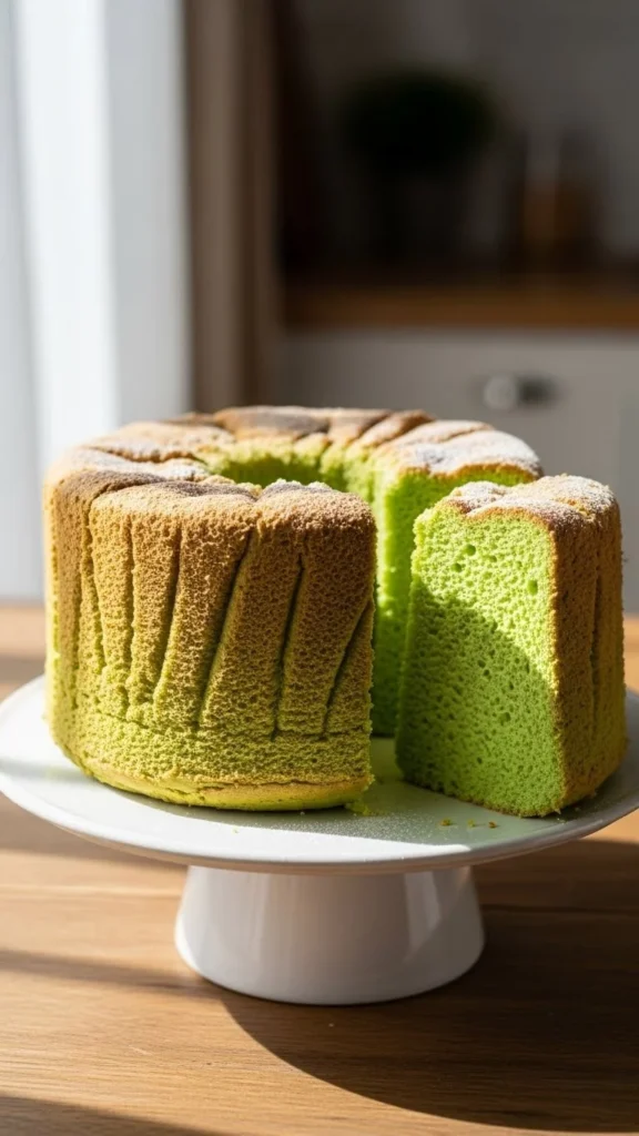 This pistachio cake is soft, moist, and lightly nutty. Ground pistachios add flavor and natural color. The crumb stays tender for days. A simple frosting keeps it comforting and familiar. Each slice shows a gentle green tone.