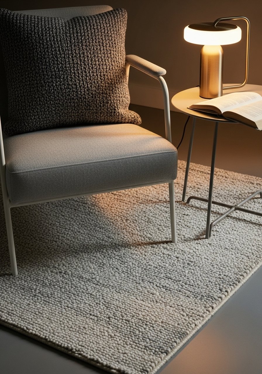 Anchor the nook visually with a rug to create an instant room-within-a-room. I used a low-pile rug so it won’t snag book bags or chair legs, and it made the corner feel grounded. Choose a chair with an arm height that lets you rest a book without cramping your elbow. If space is tight, use a floor cushion or wicker-storage-basket topped with a cushion for seating and hidden storage. I swapped mid-priced cushions until I found one that supported my back; comfort matters more than looks once you sit for 40 minutes or longer.