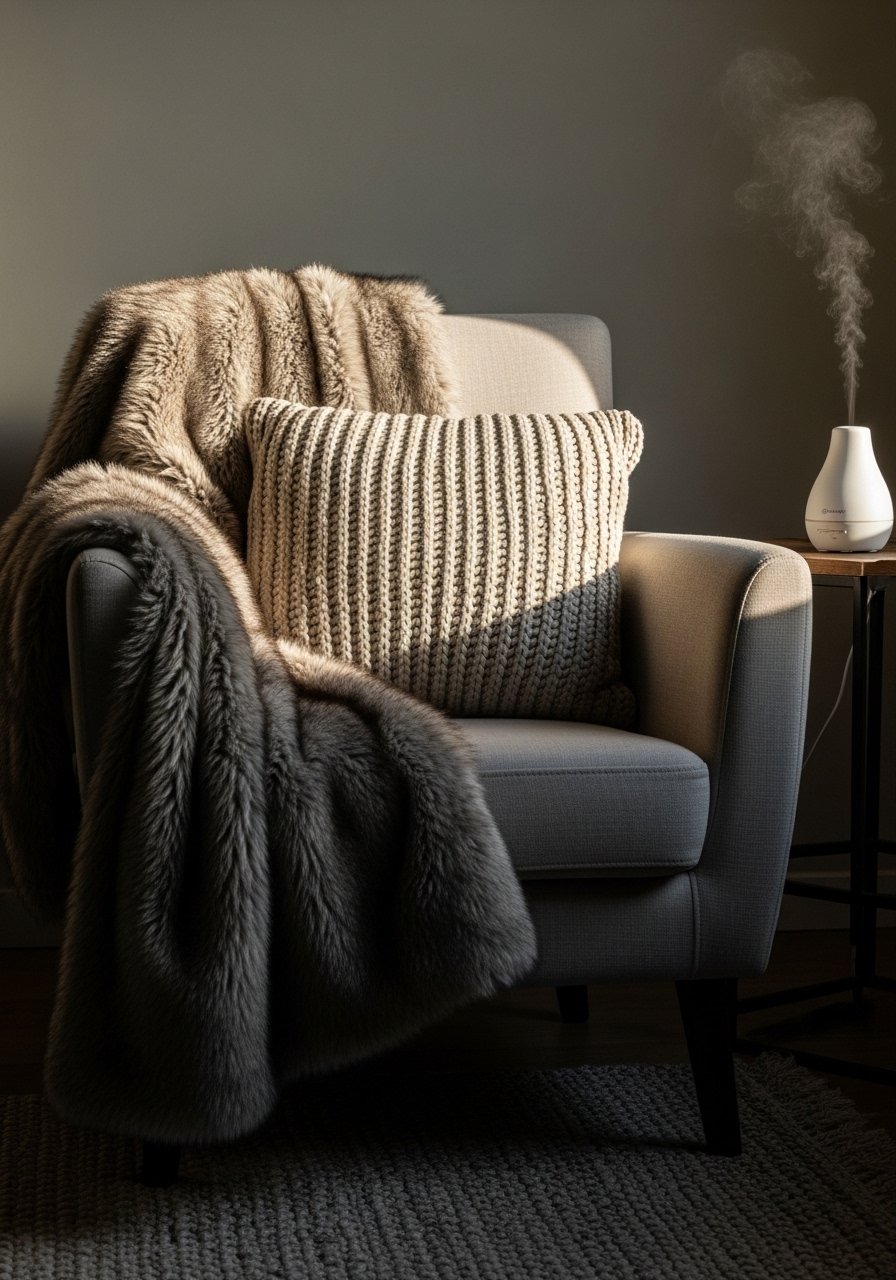 Mix textures: Pair a faux-fur-throw-blanket with linen cushions for contrast that invites touch.