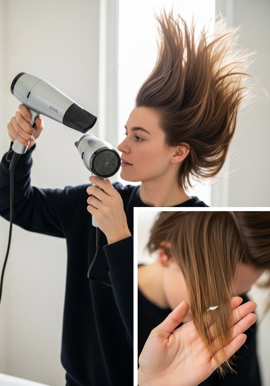 Finish with a quick cool blast from the hairdryer to lock the style without frizz. Then apply a pea-sized amount of a lightweight shine serum to the ends only. A cold setting does more than it sounds; it closes the cuticle and helps waves sit smoother. For an edge, keep a travel-size flexible hairspray in your bag for midday touch-ups. I noticed that when I do the cool blast step, my waves feel softer and last longer during humid days.