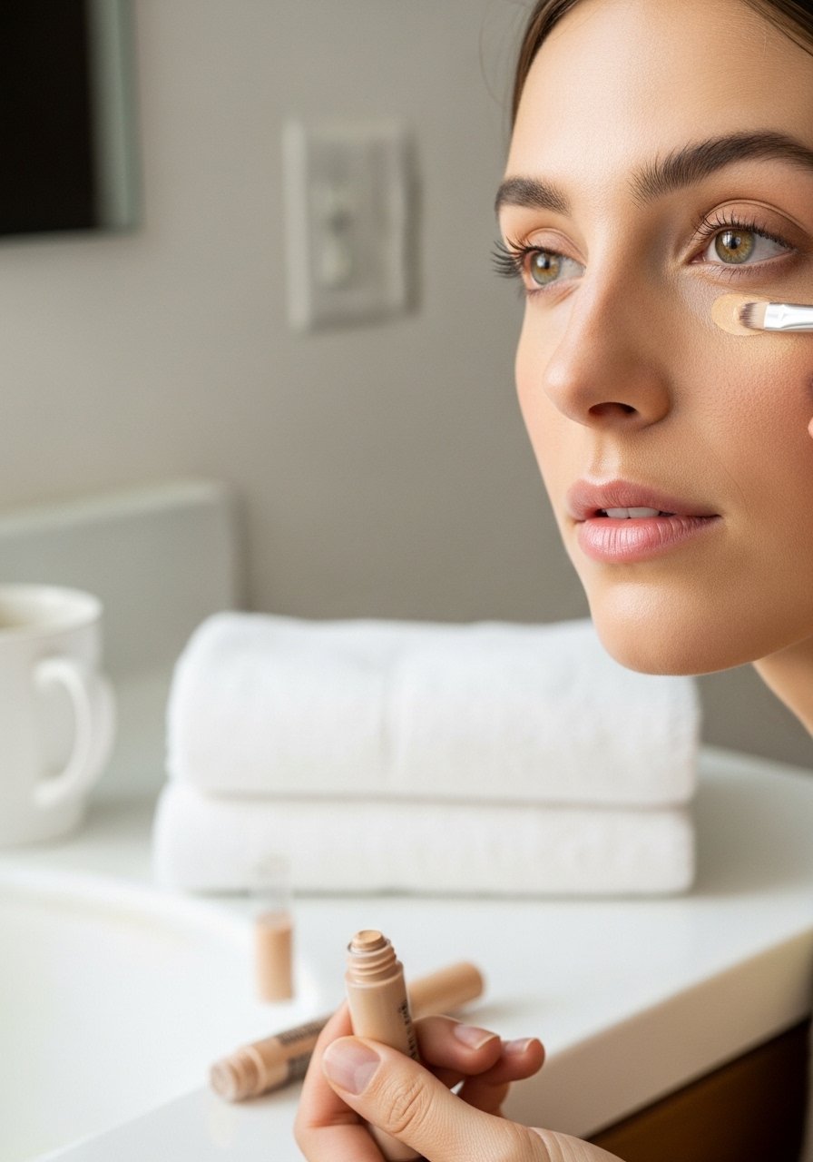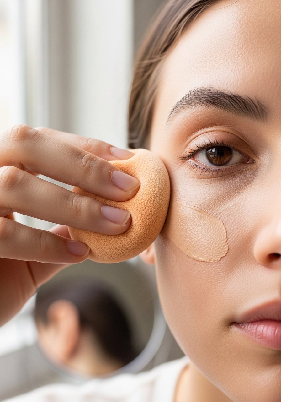 I used to dot heavy concealer everywhere, and it read makeup from across the room. Now I apply cream-concealer in a small triangle under one eye when needed, and lightly on any red spots. Warm the product on the back of your hand, tap with a damp sponge, then blend outward so the edges melt into skin. For dark circles I apply slightly less than I think I need, because a bit of brightening plus a sheer base looks more natural. I find that about 55% of the time a tiny sweep of concealer is all you need, saving time and avoiding cake.
