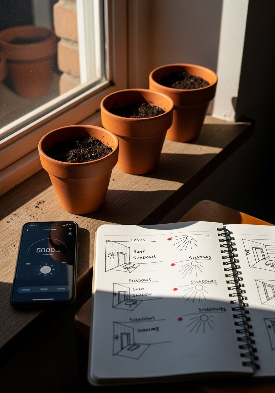 Measure or observe where the sun hits and when. I used a phone app once, then just sat with a cup of coffee and watched light move across the balcony. I found about 70% of my herbs did fine with just morning sun, while fruiting plants wanted at least five to six hours. Note shadows from overhangs and neighboring buildings. Use that info to place leafy greens in lower-light zones and sun-hungry tomatoes on the brightest rail. That simple map saved me from moving pots all season.