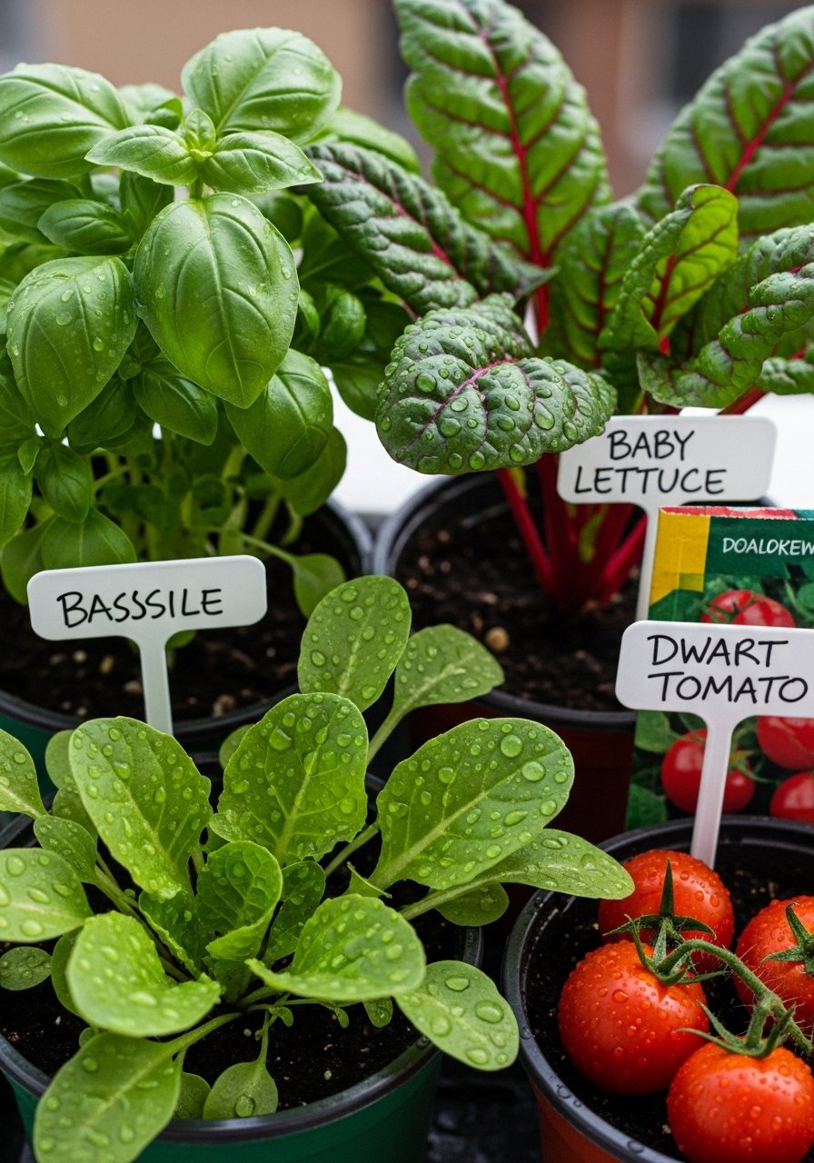 I learned the hard way that big-vining varieties sulk in tiny pots. Choose dwarf or patio cultivars, microgreens, and cut-and-come-again lettuces. Herbs like basil, thyme, and chives are forgiving and give you a lot quickly. When I swapped to compact varieties, my survival rate jumped to about 70% across the season, and I actually harvested every week. Group plants by water needs so thirsty basil doesn’t drown drought-tolerant rosemary.