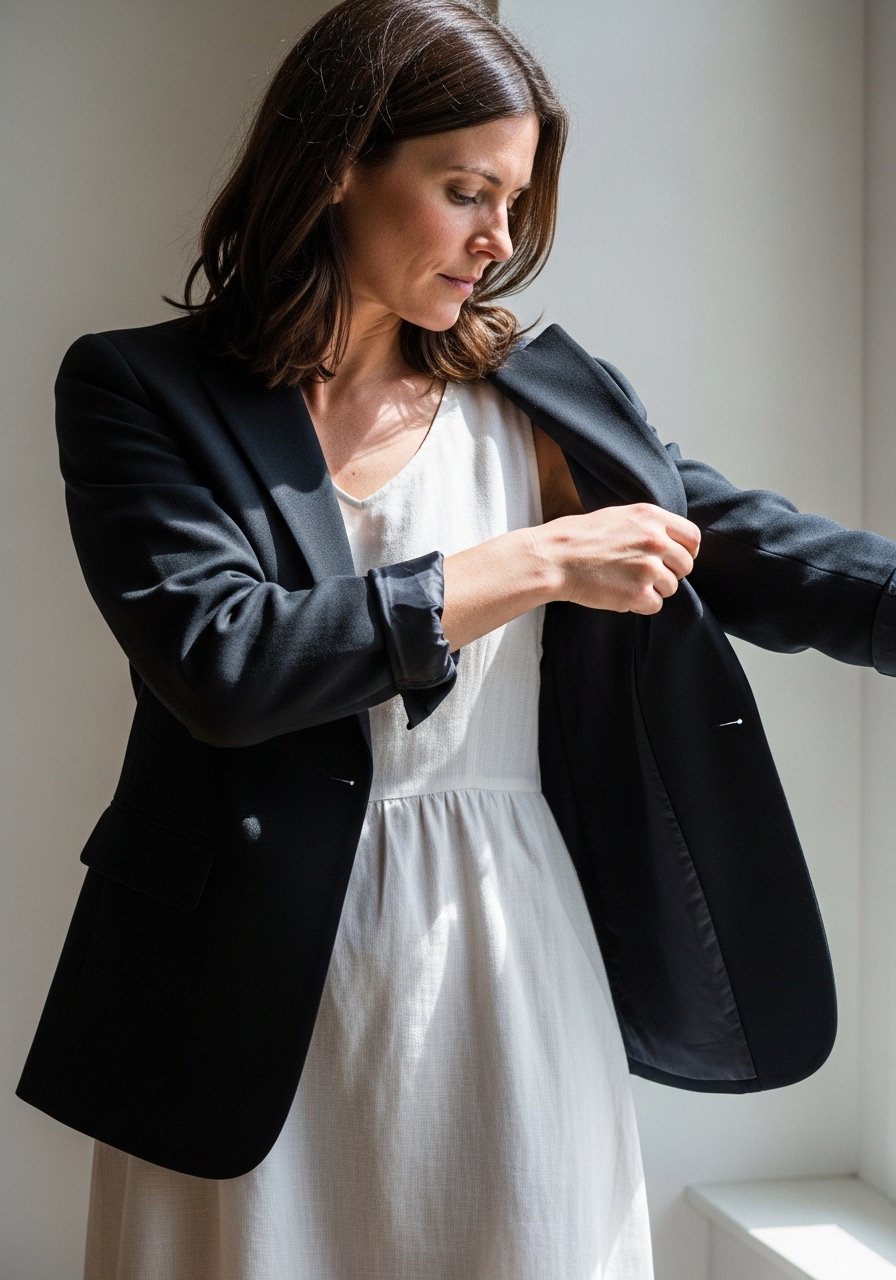 A blazer changes how fabric behaves. It gives a casual dress structure without fussy tailoring, and I’ve turned tees and sundresses into meeting-ready looks by adding a structured-blazer. Pro tip: pick a blazer with a tapered waist and slightly padded shoulders to hold the dress fabric back. In my experience, about 3 out of 5 times a blazer makes a dress appropriate for evening events.