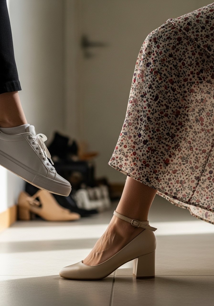 Shoes change perception fast. I used to default to sneakers, which read casual even with a blazer. Once I started keeping a pair of low block heels or heeled ankle boots by the door, eight out of ten times the outfit felt instantly dressier. Heeled-ankle-boots are great for fall, while mules or block heels work in summer. The height helps posture too, which makes the whole look more intentional.