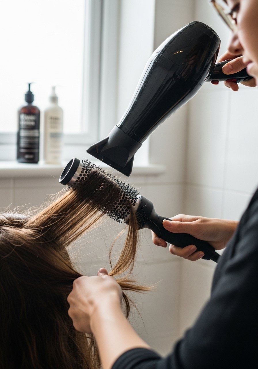 Use a round brush and a focused blow-dry to create the desired curve at the ends. I direct the nozzle down the hair shaft to smooth the cuticle and wrap the brush around the ends to tuck them slightly under or flick them out, depending on the look. For a modern chic finish, point the brush slightly toward the face on one side and away on the other, it reads intentional. I always finish with a blast of cool air to set the shape. A dependable hair dryer with pressure control saved me so many mornings.
