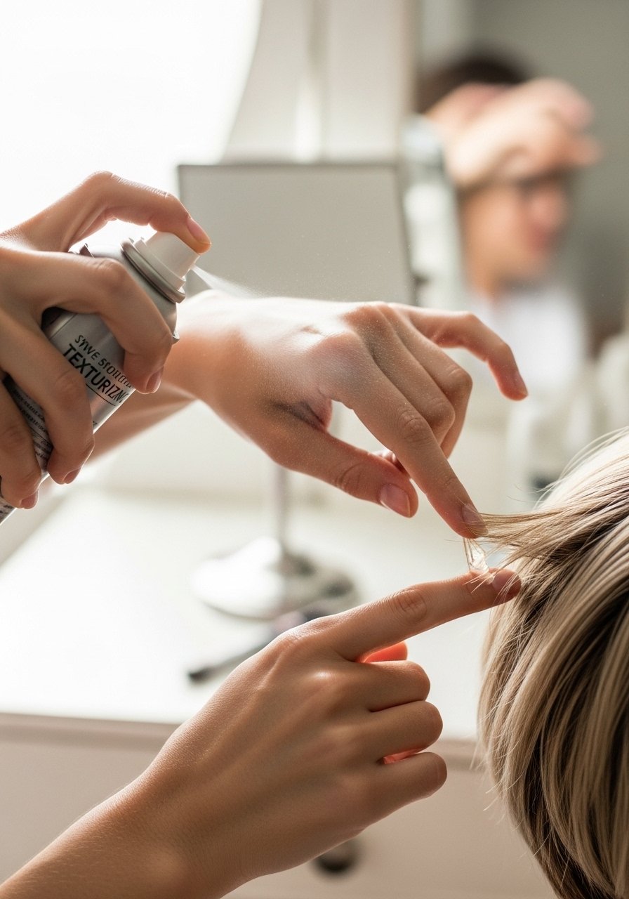 Mistake to Avoid: Spraying texture at the roots and creating a lifeless crown