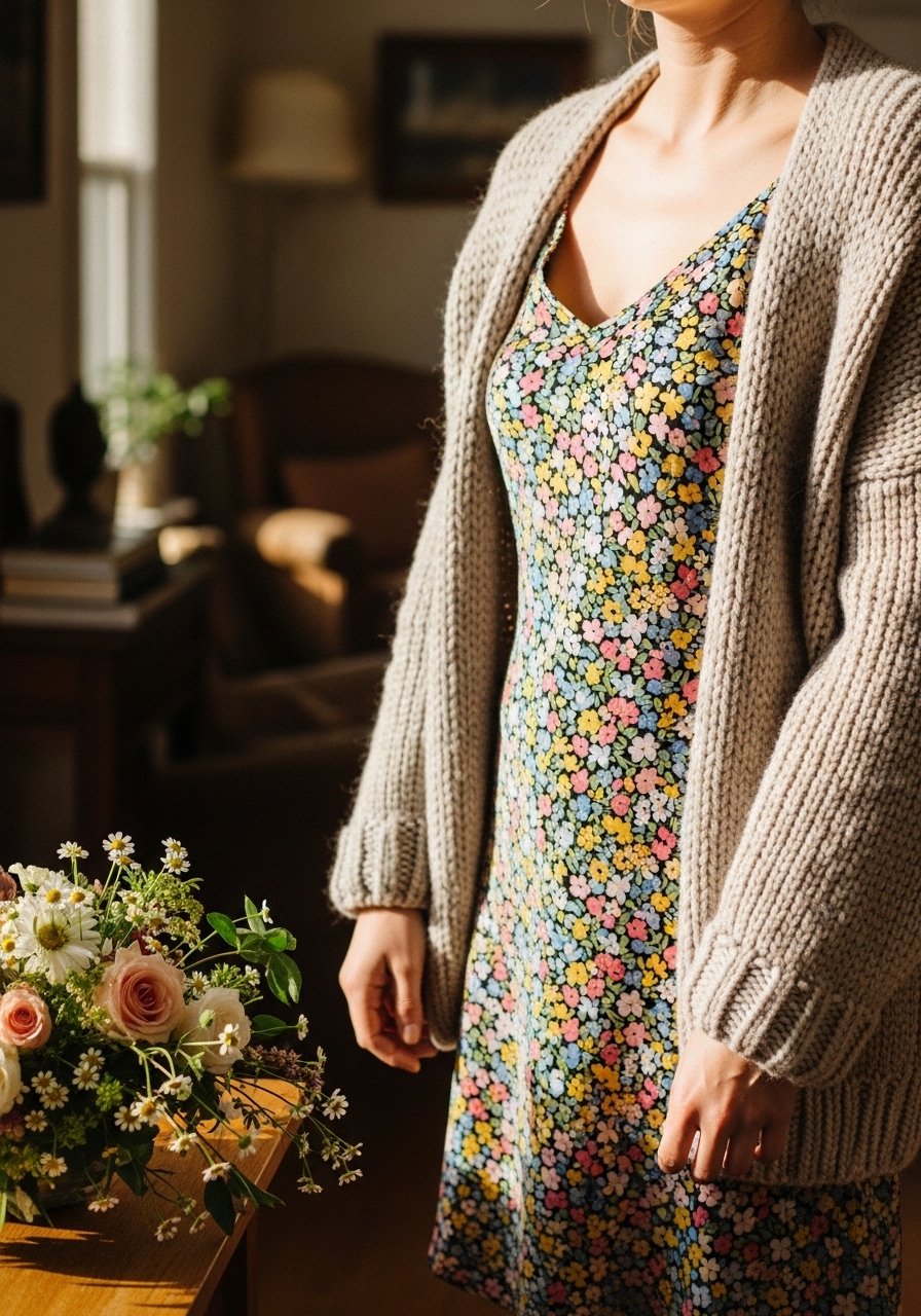 I love the contrast of dainty slip dresses with a chunky knit cardigan, it grounds the look and works for office drinks. Add ankle boots or white sneakers depending on plans. I usually pick a mid-weight knit like knit-cardigan-womens so it does not overwhelm the dress. Once I forgot a belt and the silhouette looked shapeless, so I keep a slim leather belt in my bag.