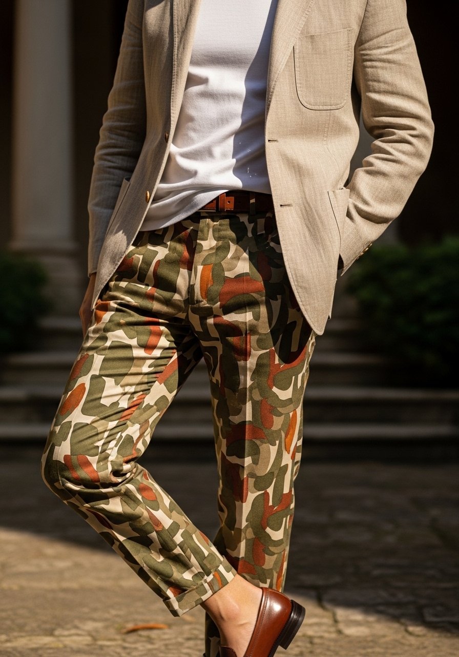4. Linen Blazer over a Tee with Mismatched Bottoms