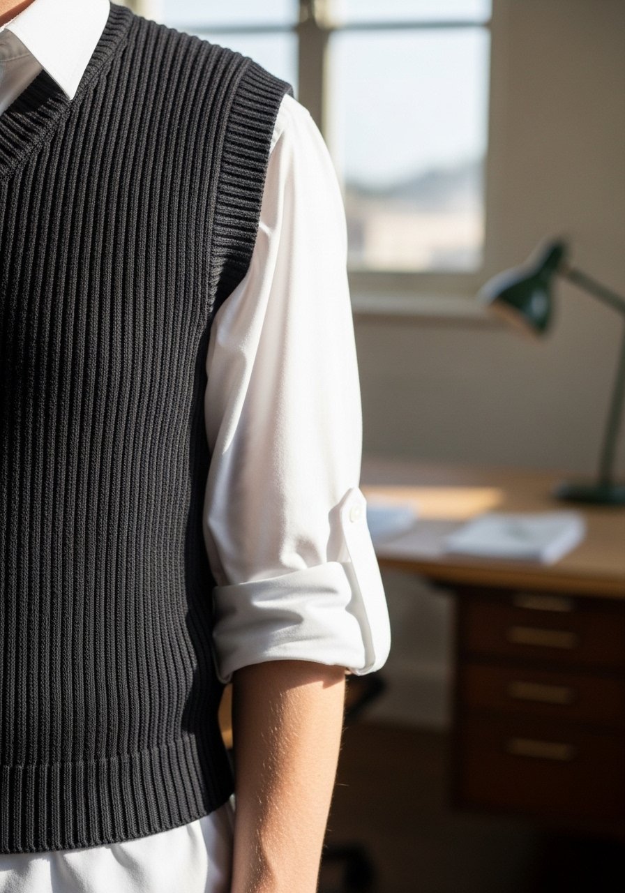 Knit vests are a subtle way to layer without adding sleeves. I like a thin v-neck knit vest over a slightly oversized button-down, tuck the front for shape. It reads modern and works for casual office days. Try knit-vest-women with classic-white-tee or a patterned shirt. I noticed layering a vest adds visual interest on about 30% of my outfit photos.