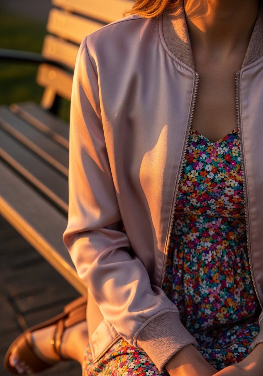 A bomber jacket tones down a floral sundress for casual evenings. I like the slightly sporty contrast and often pair with sneakers. Satin or lightweight cotton bombers work best in spring. I reach for bomber-jacket-women when I expect cool breezes. I once wore a heavy wool jacket instead and it clashed with the dress’s light fabric.
