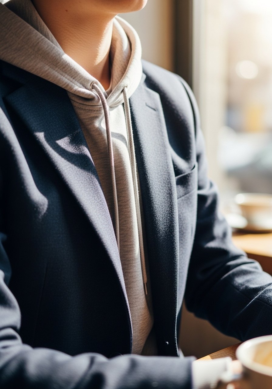 Mistake to Avoid: Don’t wear a bulky hoodie under a slim blazer, it creates a strained fit.