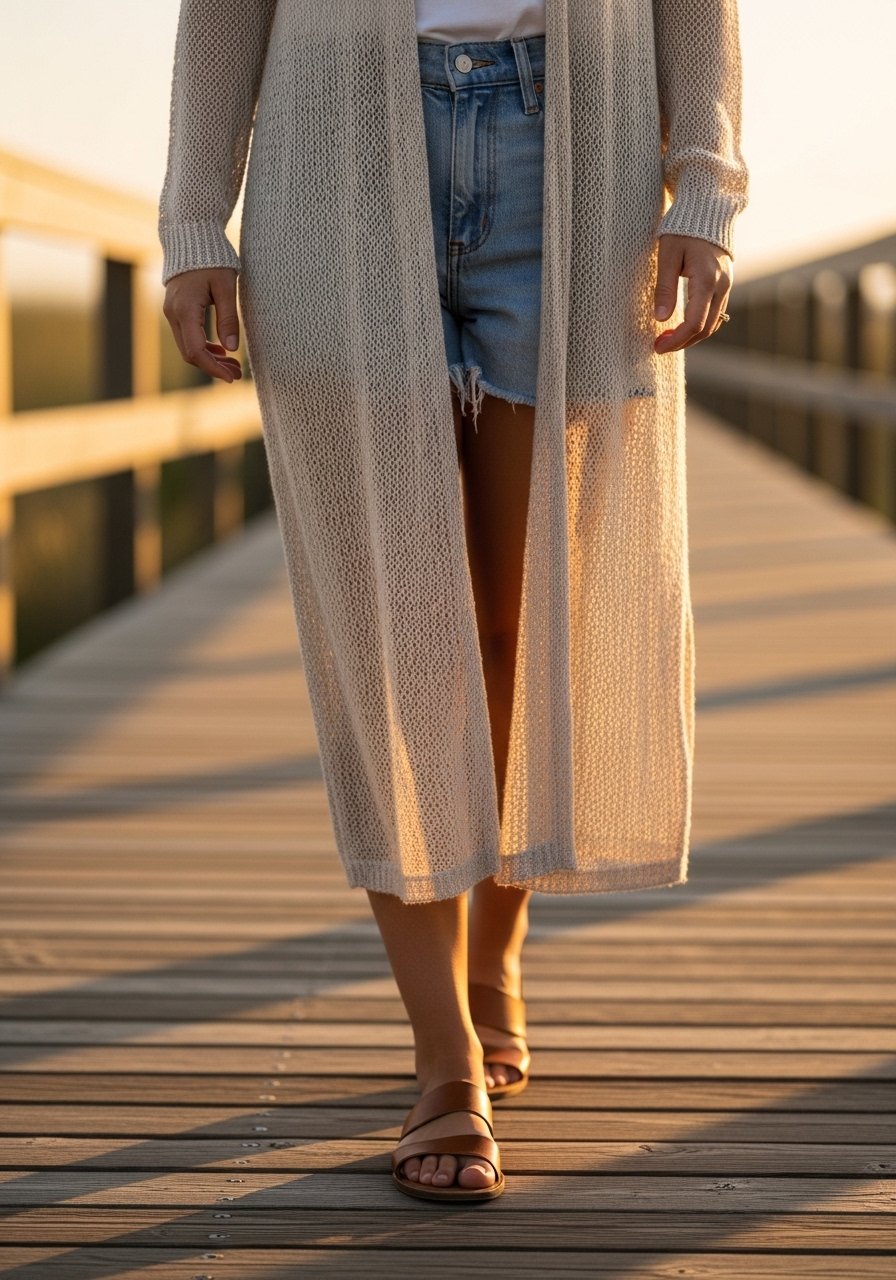 When the temperature is in-between, a longline knit over shorts is my favorite warm-cool mix. The long top balances bare legs and adds movement. I use a fine gauge knit like longline-cardigan-women. This combo made my summer trips more comfortable, I could stroll in the morning and still feel right for lunch in town.