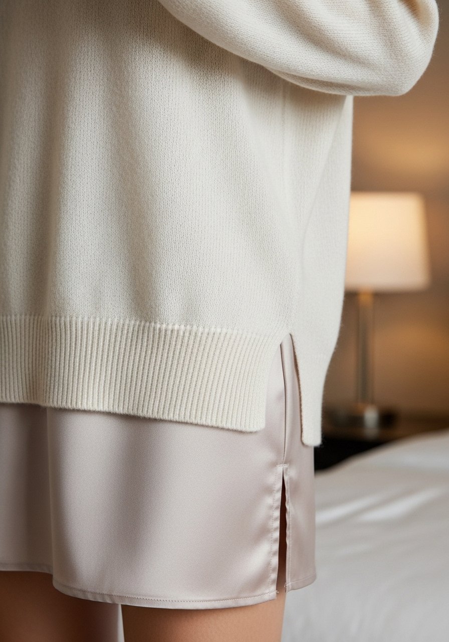 Layering a satin slip under a thin sweater adds shine at the hem and keeps things feminine. I like the contrast of textures and usually add a belt to emphasize the waist. Try satin-slip-dress with lightweight-sweater-women. I once wore a bulky sweater with a delicate slip and the combo felt off, so choose proportion carefully.